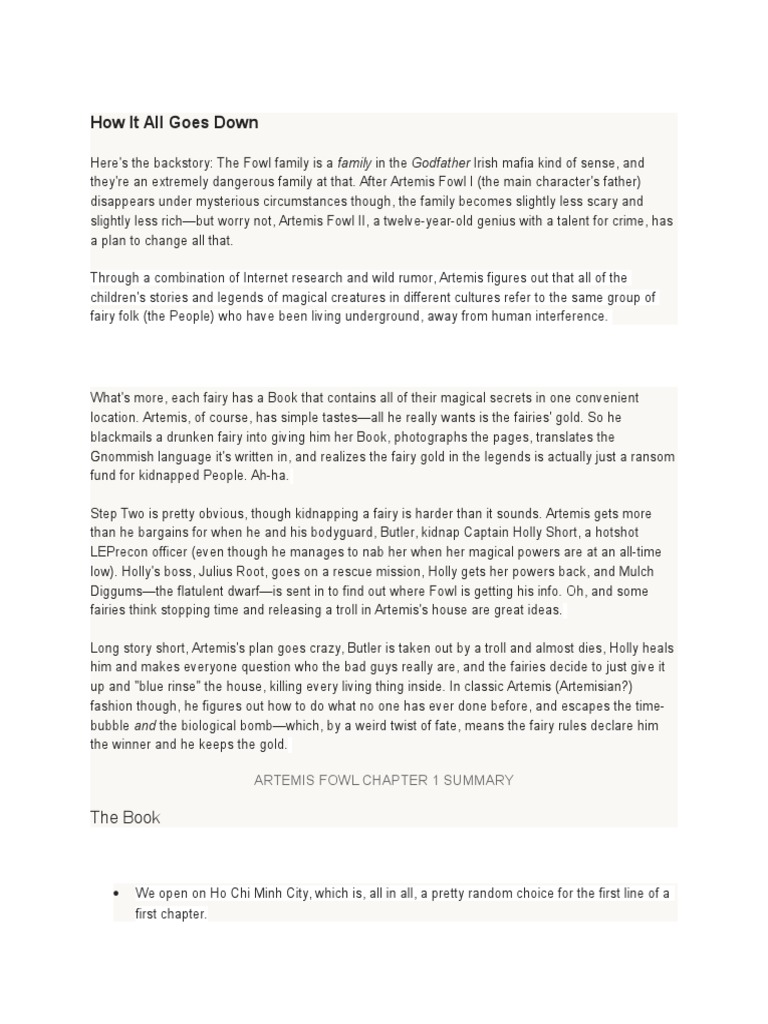 Artemis fowl book 1 chapter 2 summary. Artemis Fowl - Chapter 1 The Book Summary Analysis. A sprite pshg fairy ka-dalun 179. Sun did not suit Artemis.